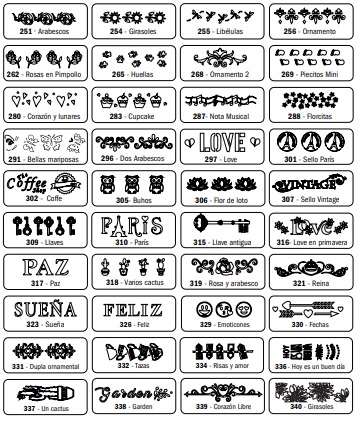 Seleccione su MODELOS ANGELITOS ARABESCO GIRASOLES LIBELULAS ORNAMENTO POCKER TREN VAQUITA DE SAN ANTONIO ROSAS EN PIMPOLLO ROCOCO HUELLAS EGIPCIOS 1 ORNAMENTO 2 PIECITOS MINI CORAZON Y LUNARES CUPCAKE NOTA MUSICAL FLORCITAS BELLAS MARIPOSAS VAQUITAS DOS ARABESCOS PARIS COFFEE PEQUEÑA PUNTILLA SELLOS BUHOS FLOR DE LOTO SELLO VINTAGE LLAVES PARIS ROMA LLAVE ANTIGUA LOVE EN PRIMAVERA PAZ VARIOS CACTUS ROSA Y ARABEZCO ETIQUETA MINI REINA SUEÑA LATEN CORAZONES MARINA FELIZ ROSAS RELAX EMOTICONES FLECHAS DUPLA ORNAMENTAL TAZAS RISAS Y AMOR HOY ES UN BUEN DIA UN CACTUS LOVE MAS AMOR FAMILIA SER FELIZ
